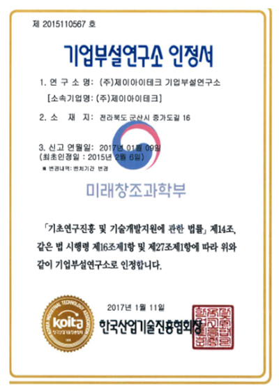 기관인증 기업부설연구소 인정서 최고관리자 2026-03-10 15:51:18 20 본문 기업부설연구소 인정서 목록 이전글 군산 시장 표창 다음글 벤처기업 선정서 댓글 0 등록된 댓글이 없습니다.